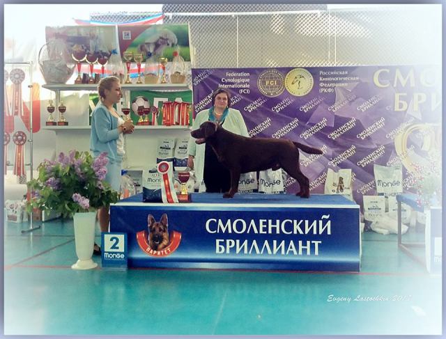 INTER CH, CH BLR, CH FIN, CH UKR, CH RUS, 4xCACIB, 3xRCACIB, 20xCAC, CH RKF, FT-DUCK, Hips-A\A, Elbows-0 |